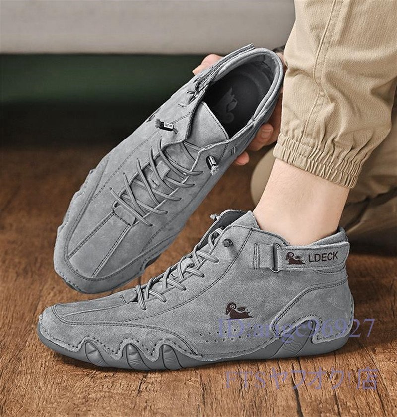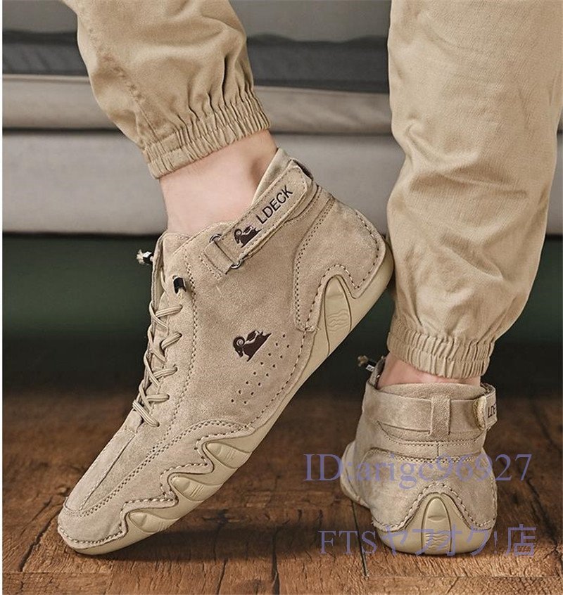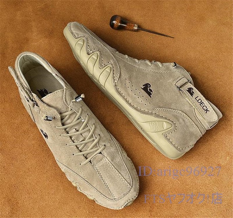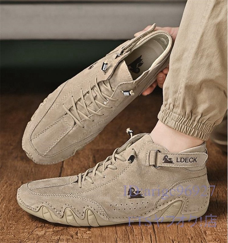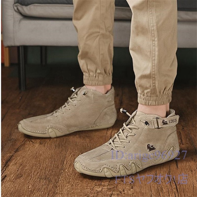 T947☆新品マーティンブーツ スリッポン ショートブーツ メンズ スニーカー 春秋靴 ドライビングシューズ カーキ 27.5cm