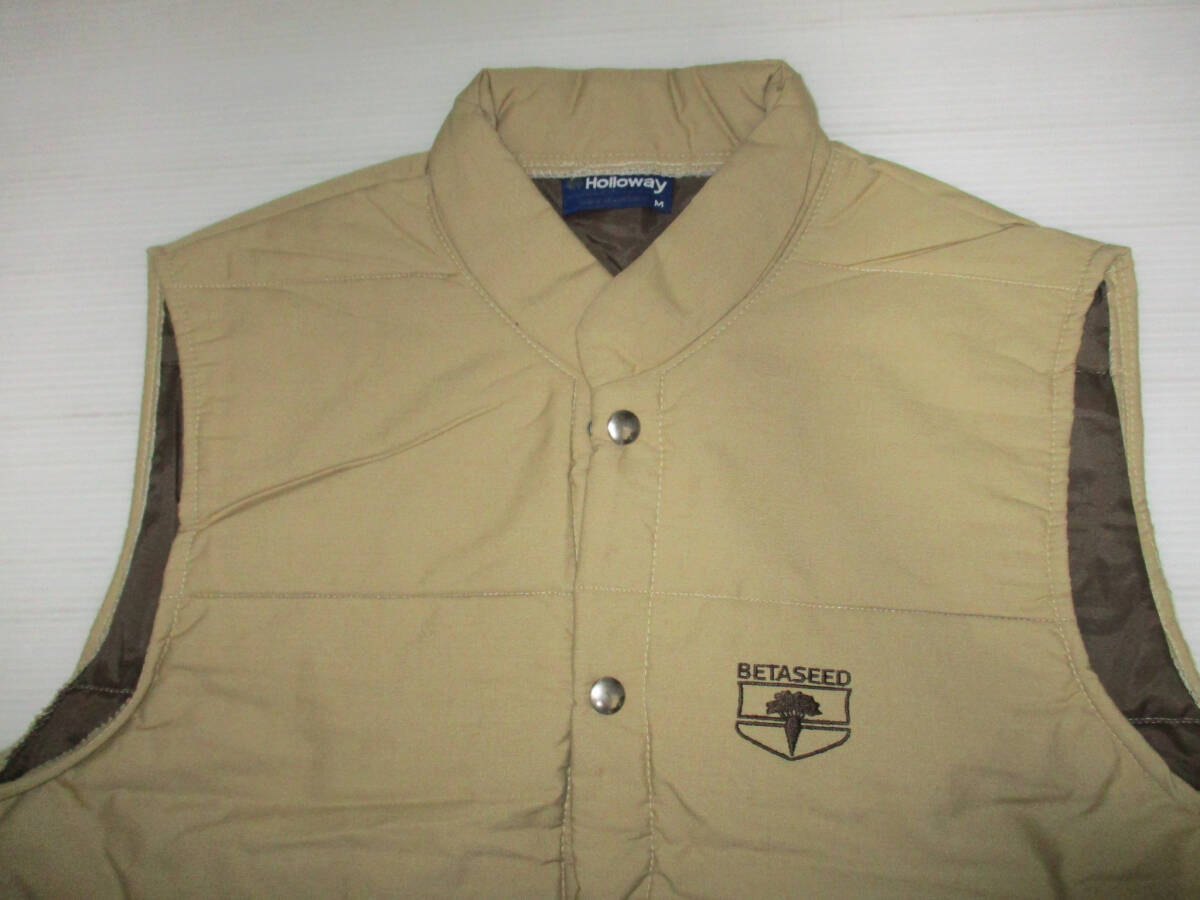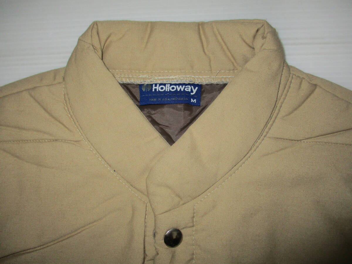 USA製☆ Holloway 中綿ナイロン ベスト ビンテージ US古着 サイズM です。素材はシェル ポリエステル50、コットン50です。TRIM ポリエステル100です。色はベージュ系です。 色は画像でご判断ください。