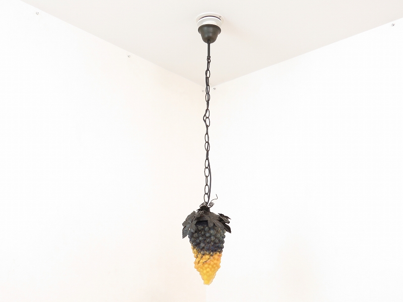 ベルギーの雑貨店で見付けたペンダントライトです。葡萄のシェードの雰囲気が良かったので買い付けました。電球は 40W まで取り付けられますが、シェードの色が白く飛びますのであまりお勧めできません。撮影では 25W の電球を使用しております。