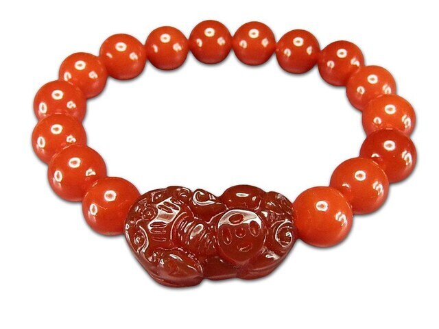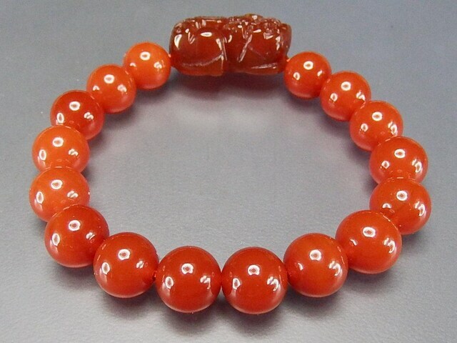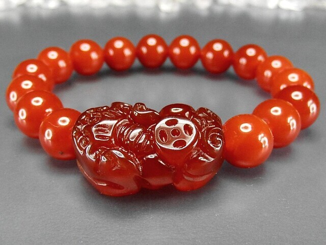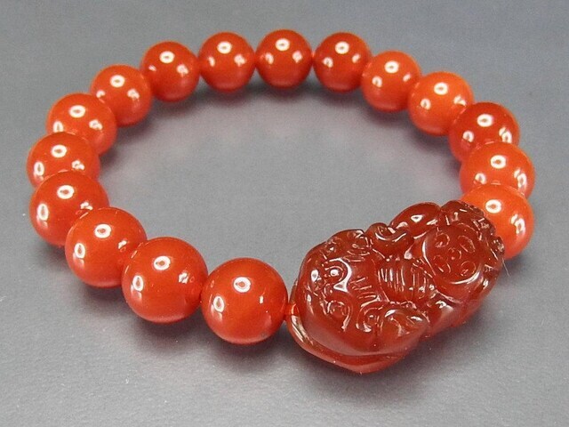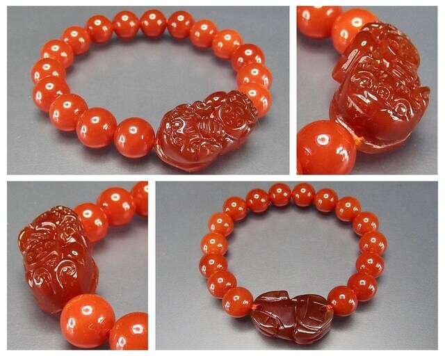 濃い目カーネリアンヒキュウ彫り10mmブレスレット天然石蓄財運