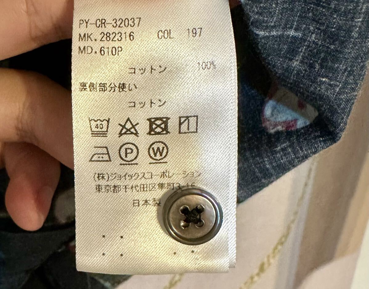 コントラストカラーの第1ボタンや、“Fabric Swatch”プリントを使用したカフス裏がさりげないアクセントです。
