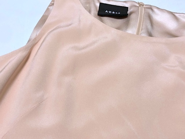 二点落札で送料無料! 2A48 AKRIS アクリス シルク100% ノースリーブ ワンピース 40 タイト ピンク フォーマル M ひざ丈 結婚式