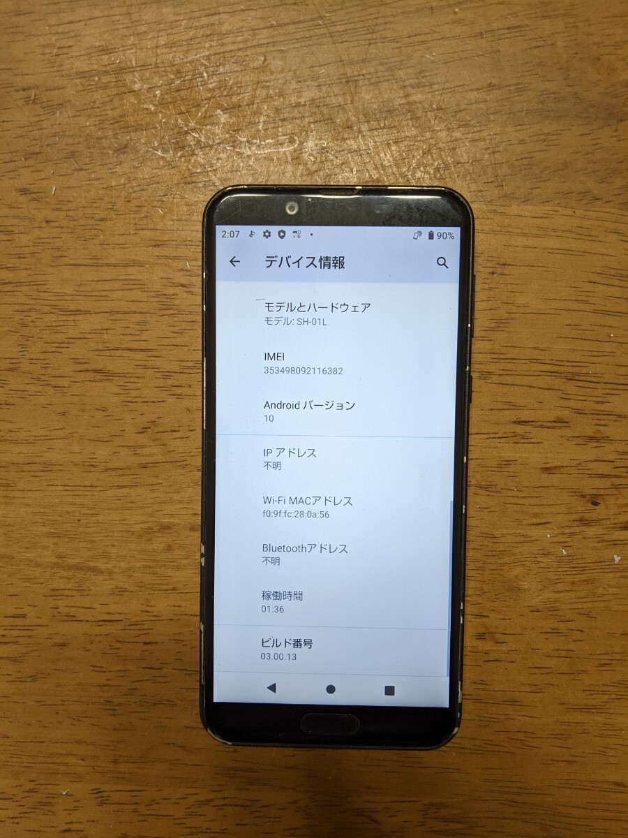 IY1003 docomo SIMフリー AQUOS sens2 SH-01L SHARP 4Gスマホ 簡易確認&簡易清掃&初期化OK 判定○ WebにてSIMロック解除受付手続済