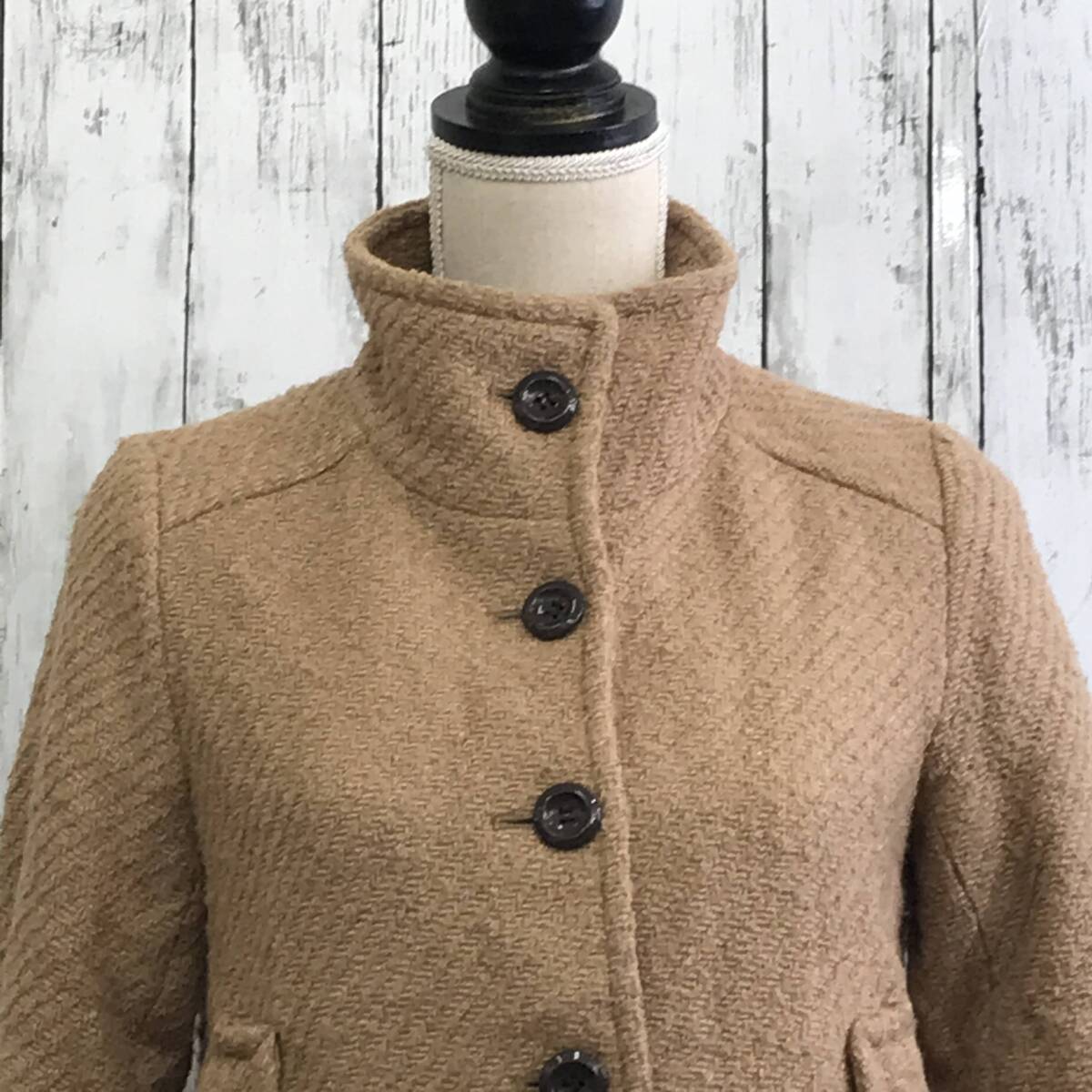 | 商品説明 | 商品名/ショートコート サイズ/S 着丈53cm身幅45cm肩幅33cm袖丈56cm 素材/表地・ウール67%アクリル25%ナイロン8% 裏地・ポリエステル100% リブ部分・アクリル87%ポリエステル10%ポリウレタン3% 商品状態/前左ポケット~裾汚れ、全体毛玉 |