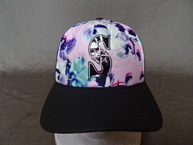 激レア USA購入【47BRAND】社製 MLBメジャー シアトル マリナーズ【Seattle Mariners】ロゴマーク付 ハイビスカス柄 メッシュCAP 中古良品