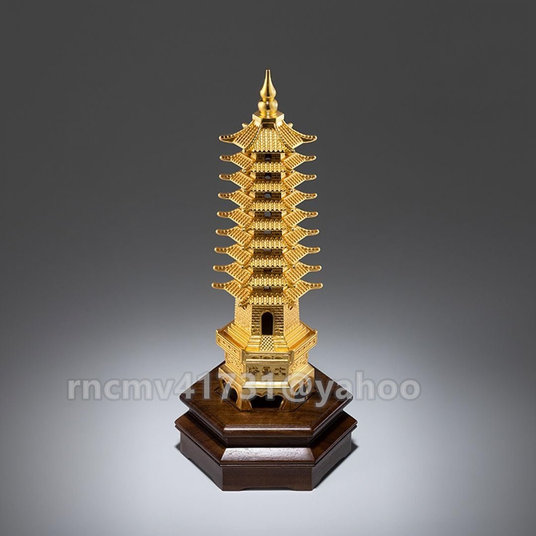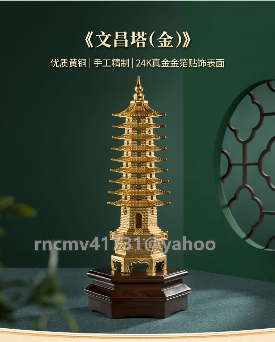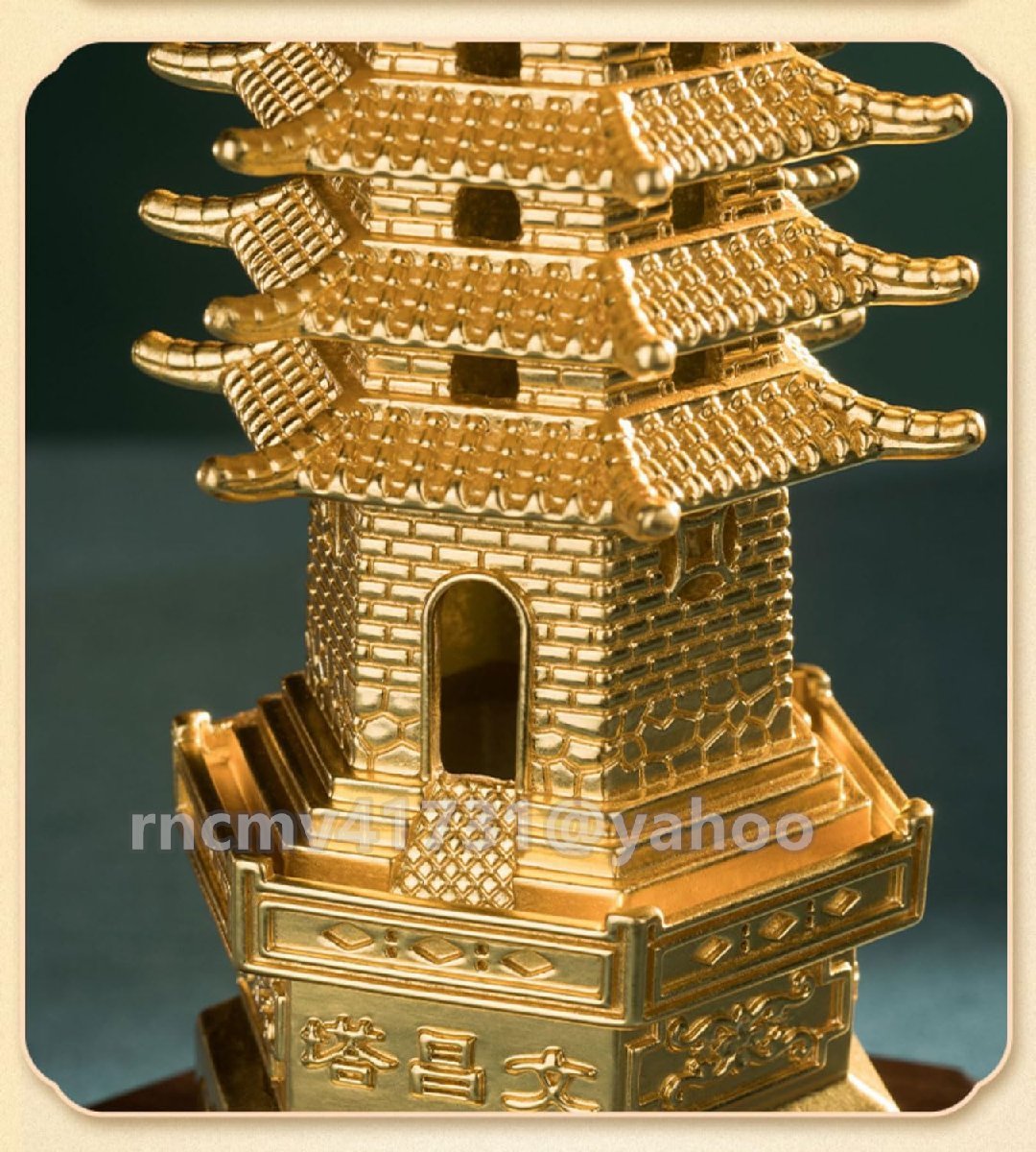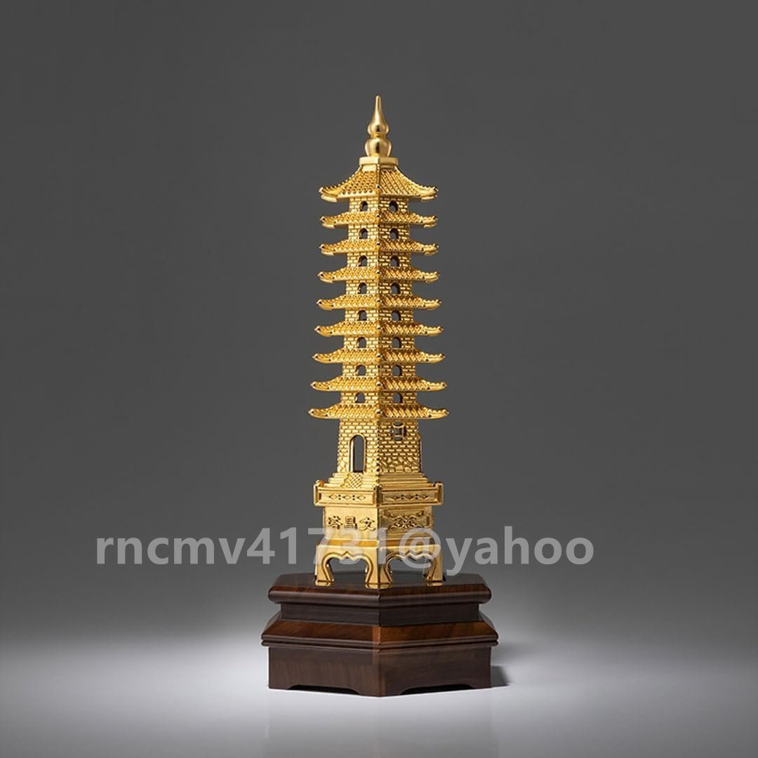 文昌塔 もんしょうとう 文昌タワー 縁起物 35cm 純銅製24金鍍金 開運 お守り 九重の塔 仕事運 成功運 風水グッズ 風水置物