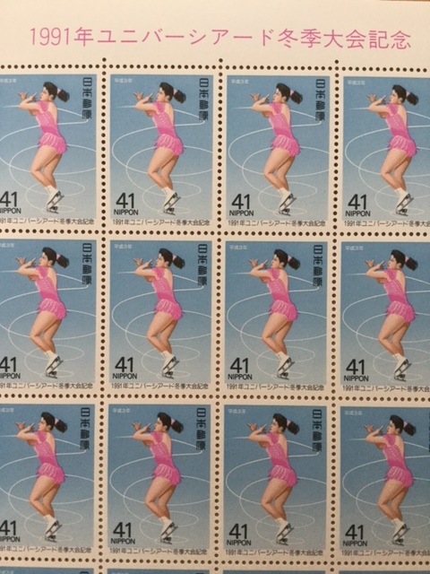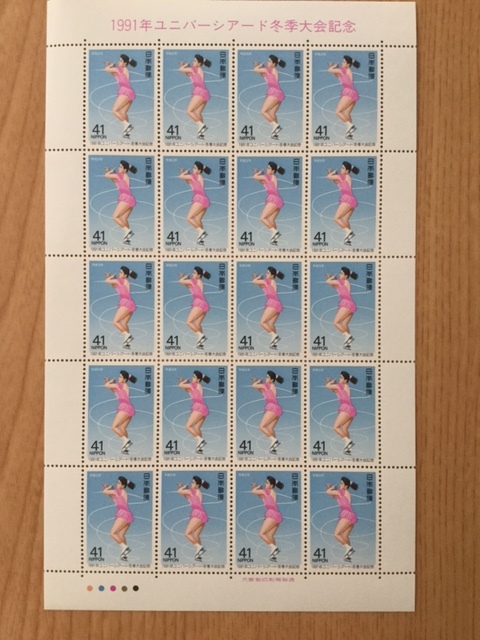 ユニバーシアード冬季大会記念 フィギュアスケート 1シート(20面) 切手 未使用 1991年