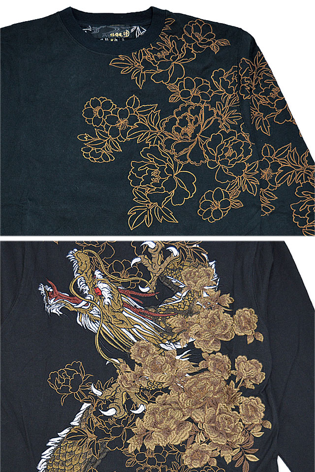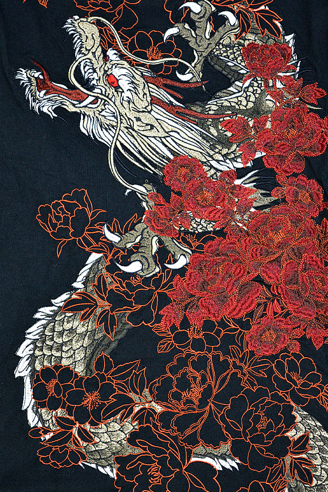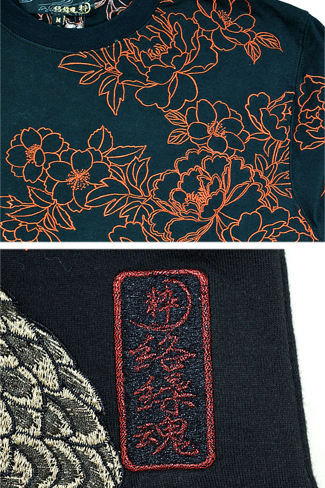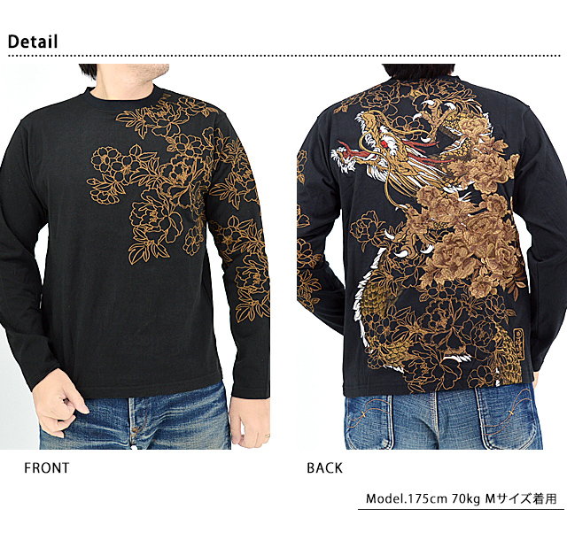絡繰魂さんから「粋 龍神牡丹ロングTシャツ(241027)」のご紹介です。 絡繰魂から迫力満点の長袖Tシャツが登場しました。 背中には巨大な龍神をダイナミックに刺繍。 背景の牡丹は身頃から袖へと続いており、 実際に着用した際には柄がより立体的に浮かび上がります。 バック左裾には、ブランドロゴを印風に刺繍しました。 ボディーには綿100%の、刺繍に負けないコシのあるTシャツ生地を採用。 それぞれ統一感のあるカラーリングが魅力的です。 | |||||||||||||||||||||||||