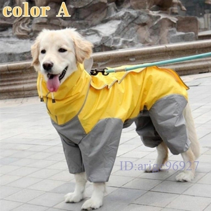Y98★中型犬 大型犬 防水 帽子付き ポンチョタイプ レインコート 犬用 レインコート ペット用 雨具 軽量 反射材付き ☆COLOR A