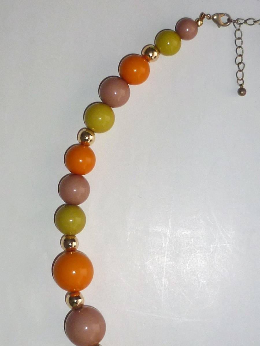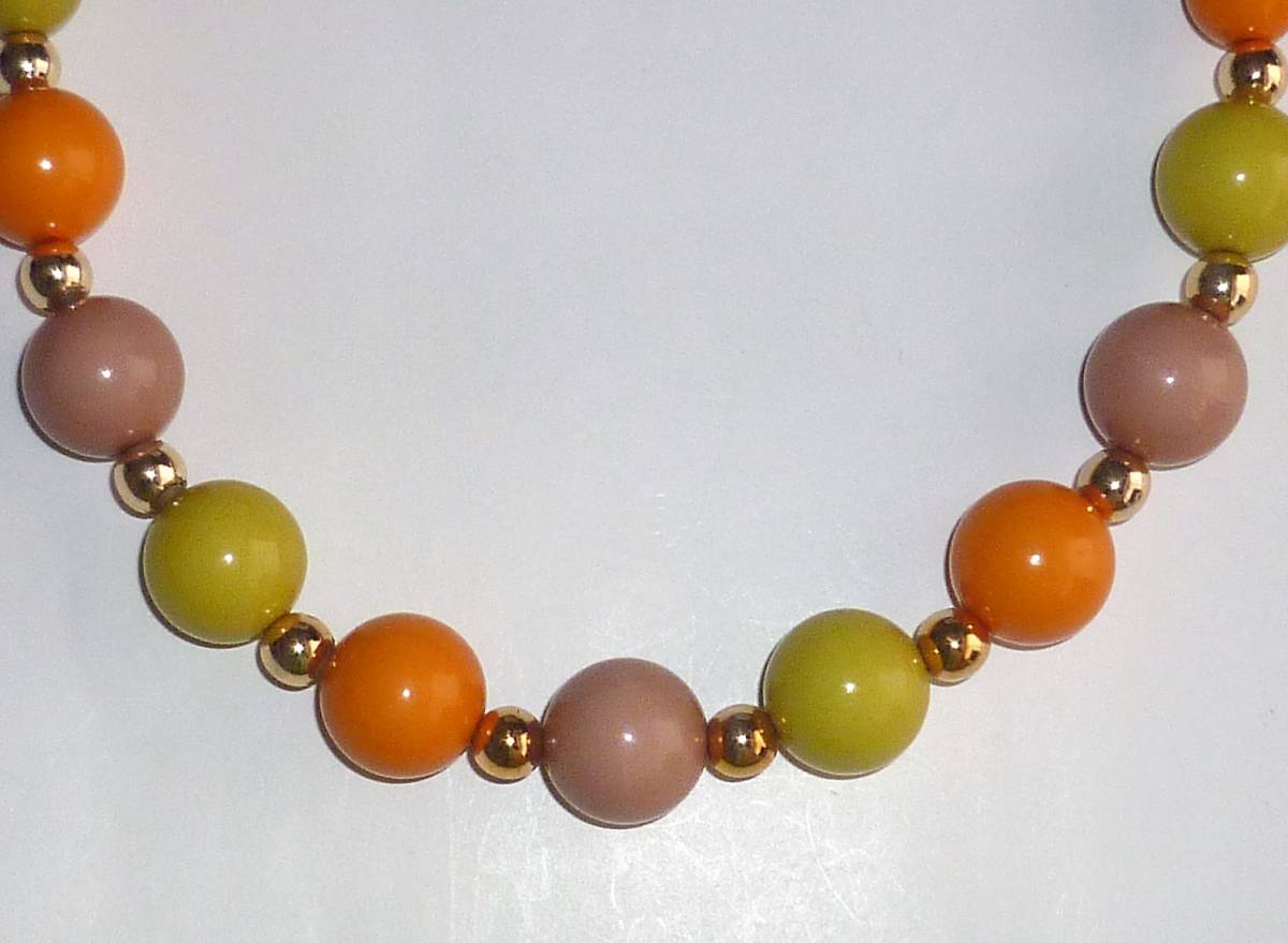 オレンジ/ベージュ/うぐいすカラー玉ネックレス 全長約54cm 重量約59g