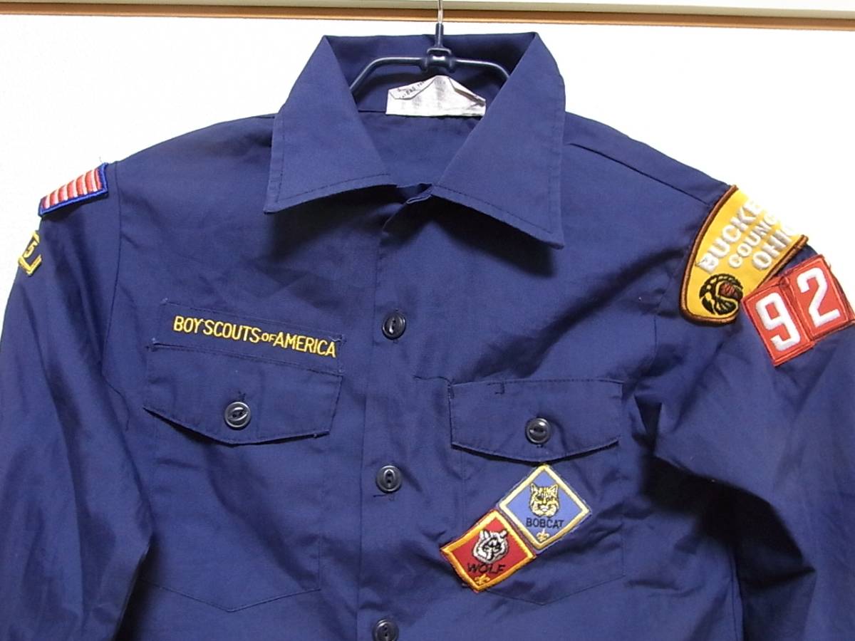 即決USA古着★BOY SCOUTS OF AMERICA★ボーイスカウト長袖シャツ紺★ワッペン