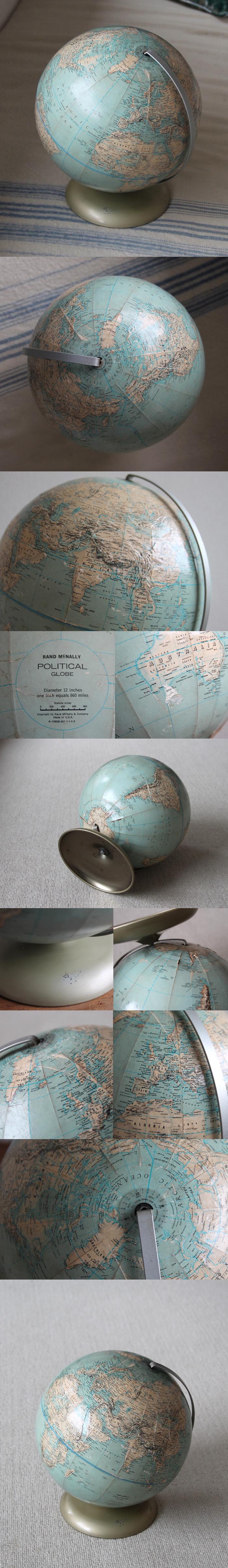 アメリカ ビンテージ RAND McNALLY地球儀/グローブ/ランドマクナリー/台座付き【インテリアにいかが?】Y-016
