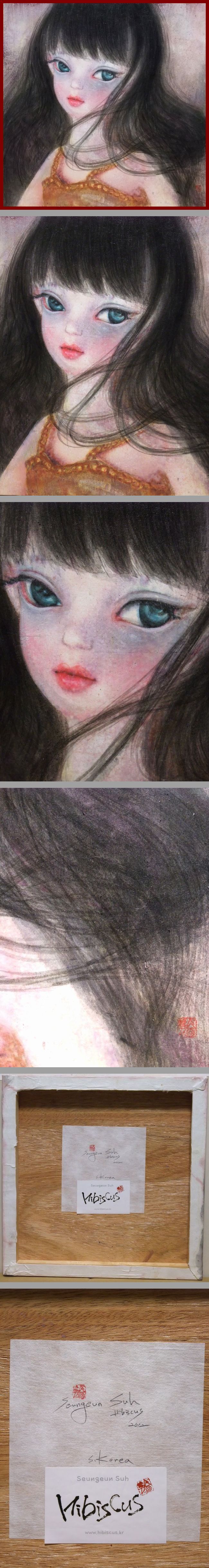 | 説明 | 東洋の精神性と現代的な美意識が完璧に融合した、吸い込まれるような魅力を持つ原画作品です。 画面の中心で圧倒的な存在感を放つ、大きな青い瞳。 その澄み渡る眼差しに見つめられると、喧騒を忘れ、深い安らぎの世界へと誘われます。幻想的な色彩の中に宿る、凛とした少女の美しさが印象的です。 伝統的な韓紙にインクと水彩を重ねることで、内側から発光しているかのような柔らかな質感を実現。 東洋独自の「ぼかし」や「滲み」が、少女の肌や空気感をしっとりと描き出しています。 水彩画を木製パネルに丁寧に貼り込み、バーニッシュ(保護ニス)で仕上げられた本作は、額装なしでもそのまま壁に掛けられるスタイリッシュな仕様です。 側面まで厚みがあるため、オブジェのような重厚感も楽しめます。 |