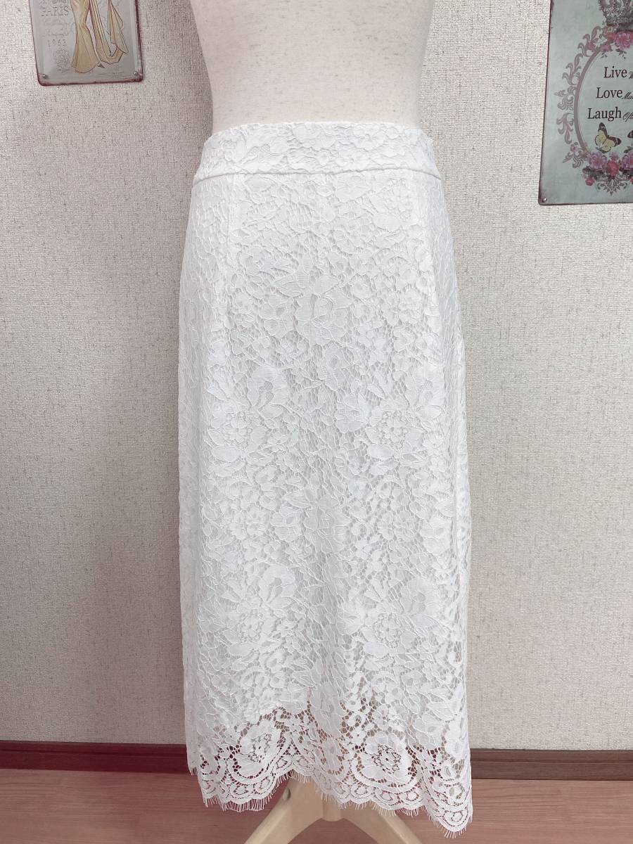 新品 M Tadashi Shoji 総レース ホワイト 上質 ミモレ丈 スカート W7108MN