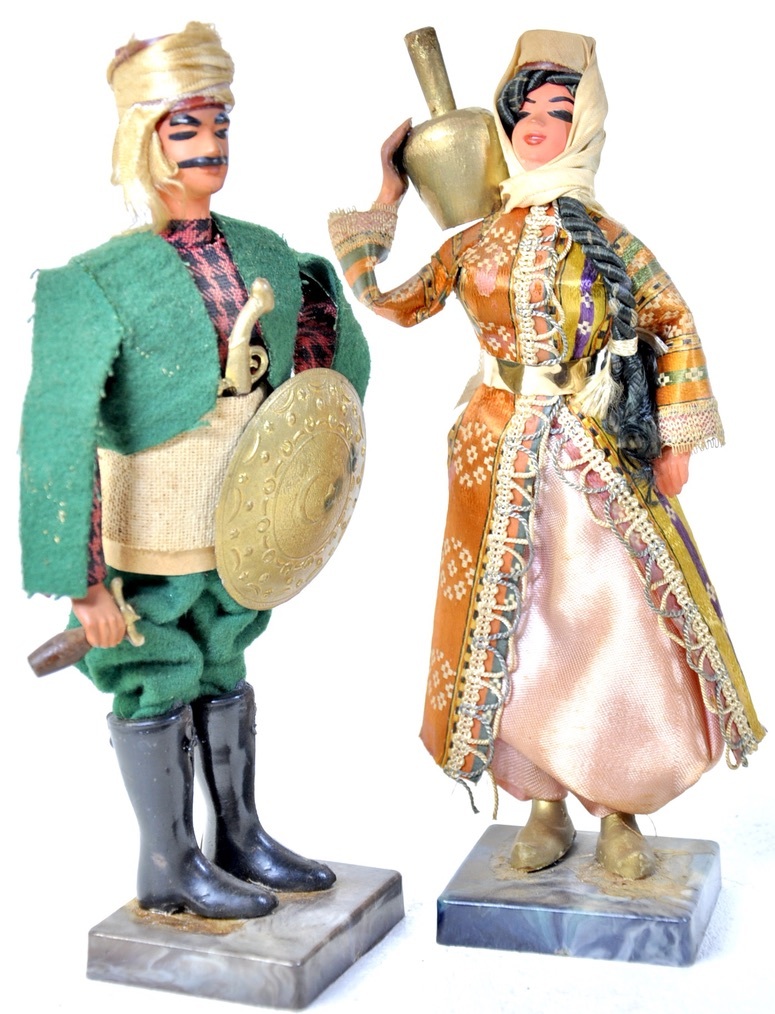 ビンテージ オスマン帝国  戦士と女性 民族人形 手作り、味わい感のある素敵な人形 エステートセール YAY