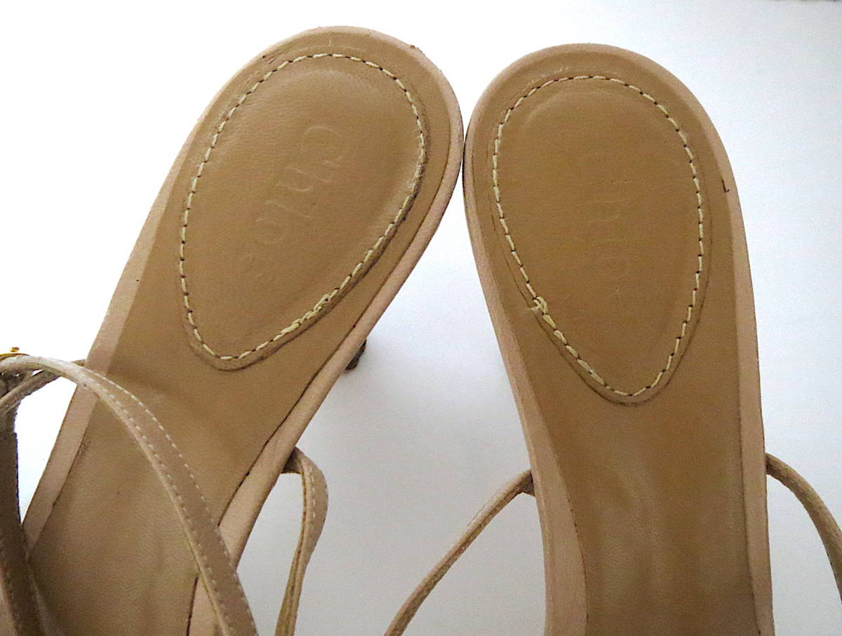 二点落札で送料無料! C048 Chloe クロエ サンダル 37 レディース イタリア製 ベージュ レザー 靴