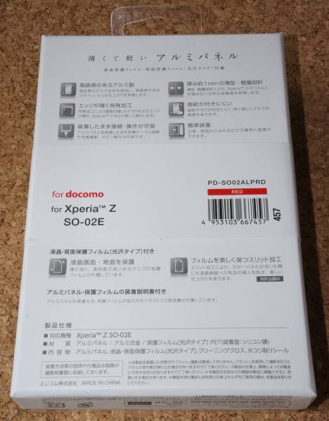ELECOM Xperia Z SO-02E docomo アルミパネル 新品・未開封です。