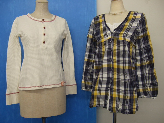 長袖カットソーと長袖シャツのレディーストップス2点の詰め合わせです。