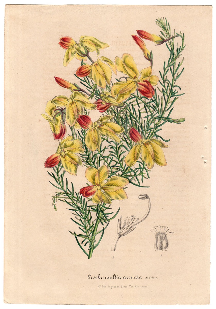 タイトルは「Leschenaultia arcuata.(=Lechenaultia linarioides.)」、美しい多色石版画です。