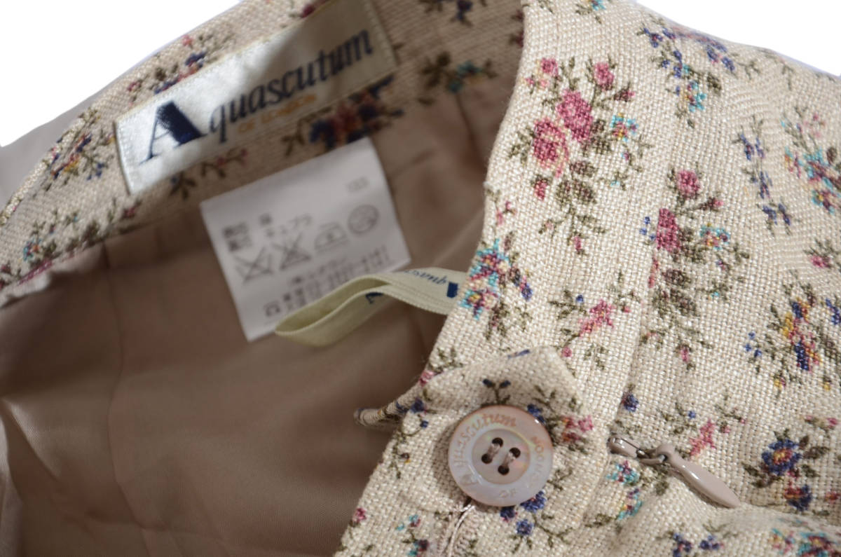 美品 アクアスキュータム リネン 花柄 プリーツフレアスカート 2点以上ご落札で送料無料!