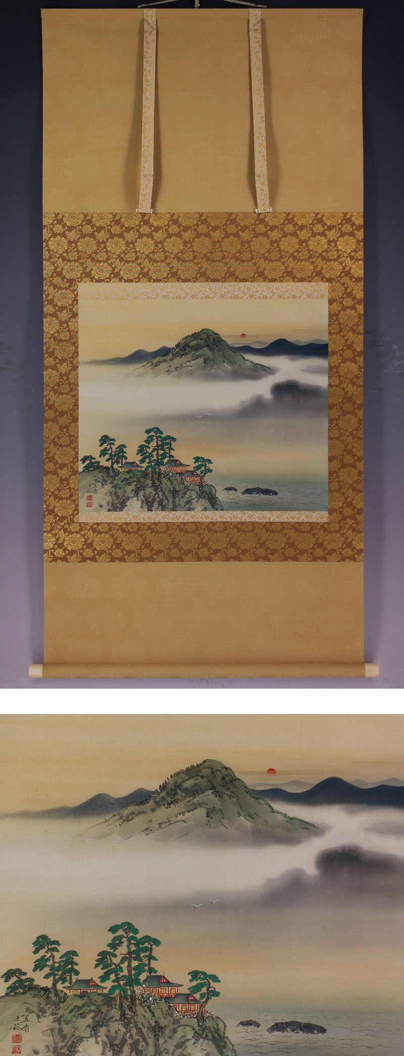 | №1609085【真作】分部五鈴【蓬莱山】◆絹本◆共箱◆掛軸 | |