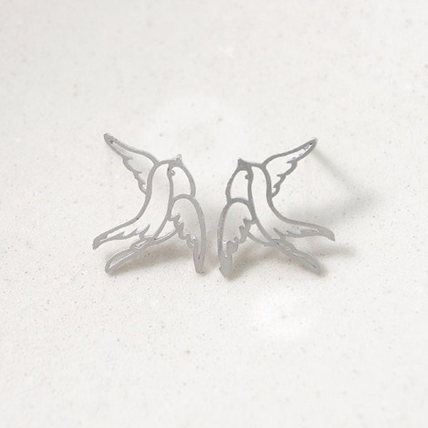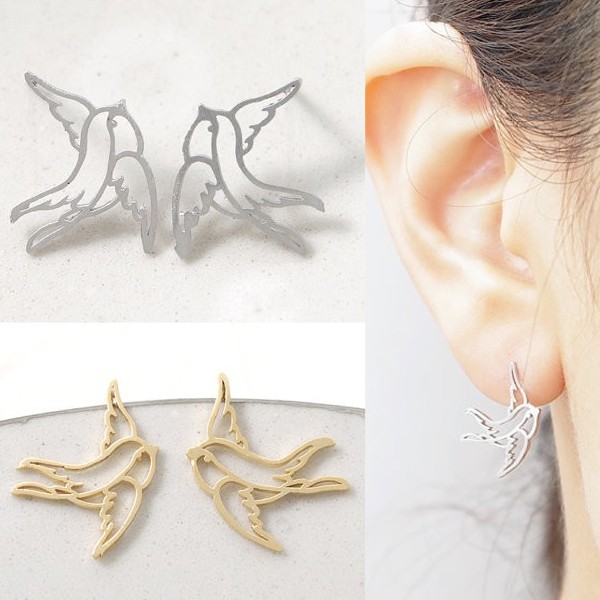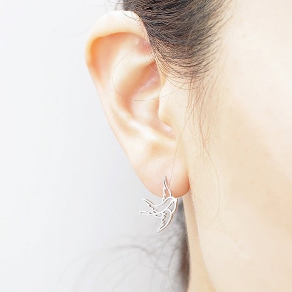ちいさな小鳥をかたどった素朴な手触りが可愛いピアス。