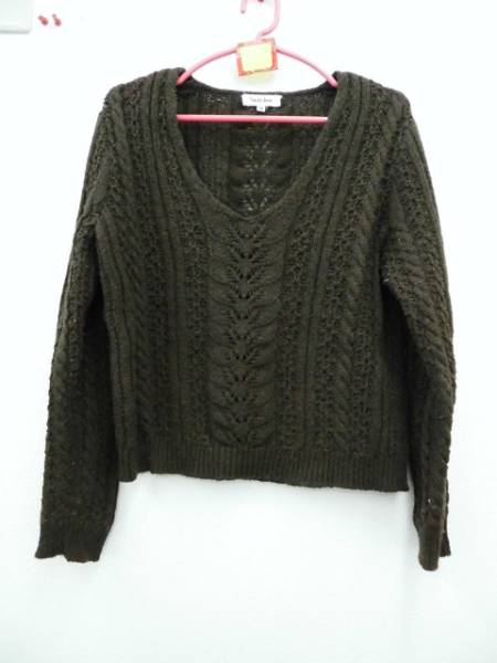 ②茶 模様編み Vネック長袖ニット(サイズ40)
