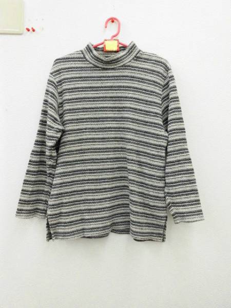 ③グレー系ボーダーハイネック 長袖?プルオーバー(Mサイズ)