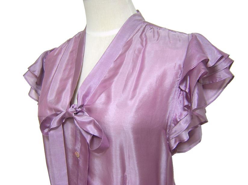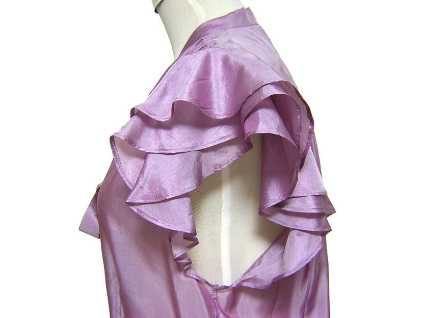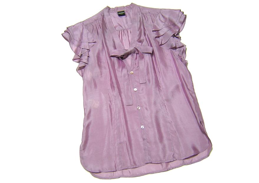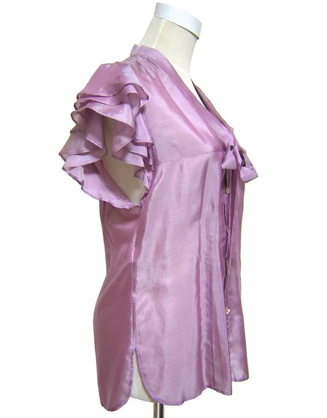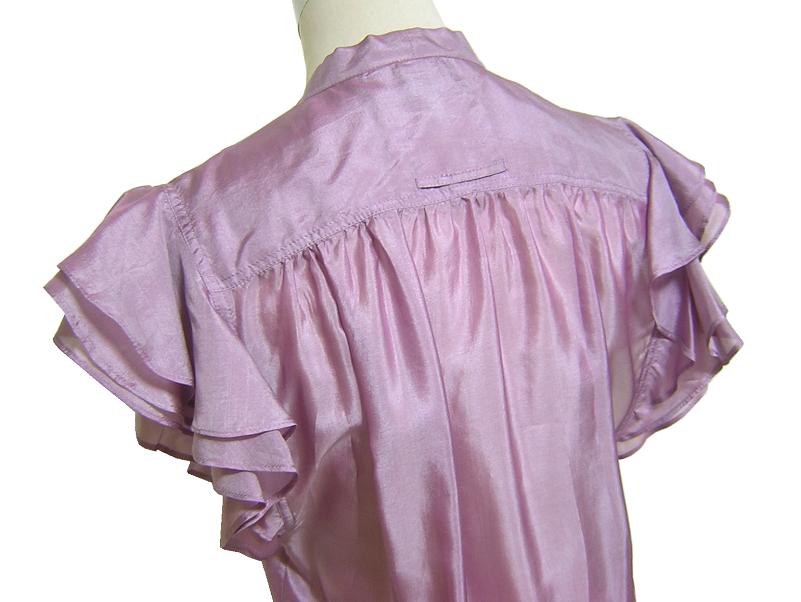 Jean Paul GAULTIER FEMME のイタリア製、 フリル袖シルクブラウスでございます。 シェルボタン/透け感あり | |