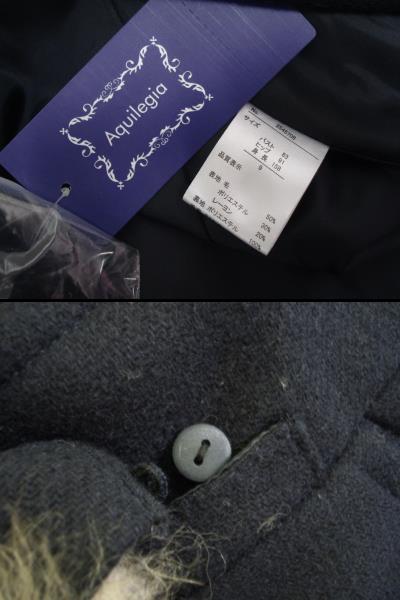未使用訳あり◆Aquilegia◆ラクーンファー ウールコート ネイビー 9/d134