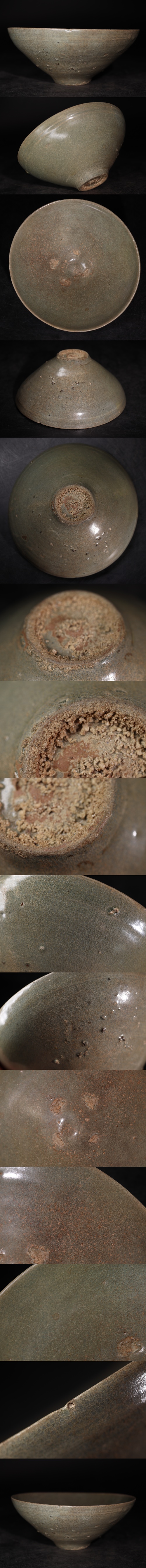 | 時代 高麗青磁 目跡 茶碗 / 朝鮮古美術 李朝 高麗 青磁 茶器 煎茶道具 .G4009 |