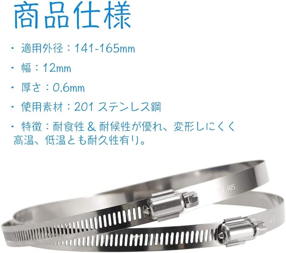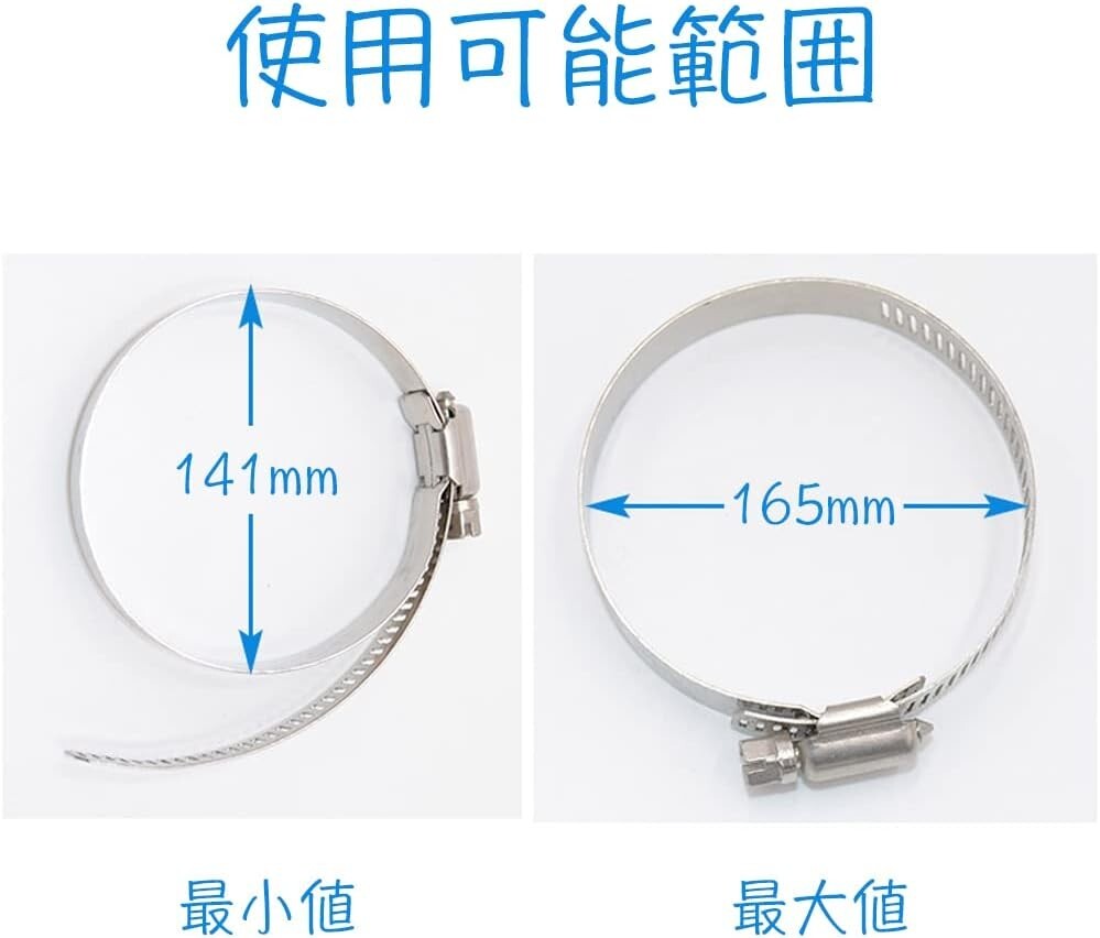 調整可能なサイズ: Φ140~160mm/150mmで、多様なホースに対応。