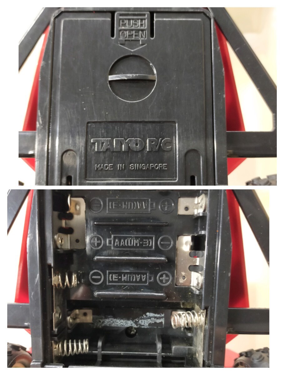 ・タミヤのコントローラは電池を入れる部分に錆があります。
