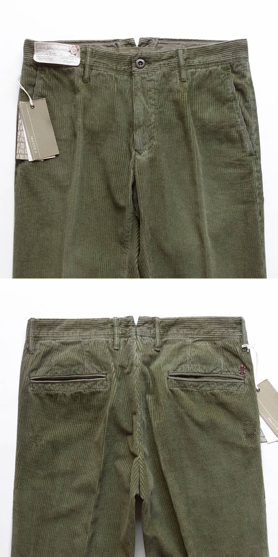 【 INCOTEX インコテックス 】 新品 コットンストレッチ美脚コーデュロイパンツ 100番 カーキ 31 45,100円 44 46