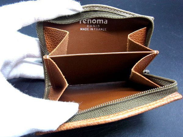 ■美品■ renoma レノマ PVC×レザー コインケース コインパース 小銭入れ カーキ系×ブラウン系 DF0718