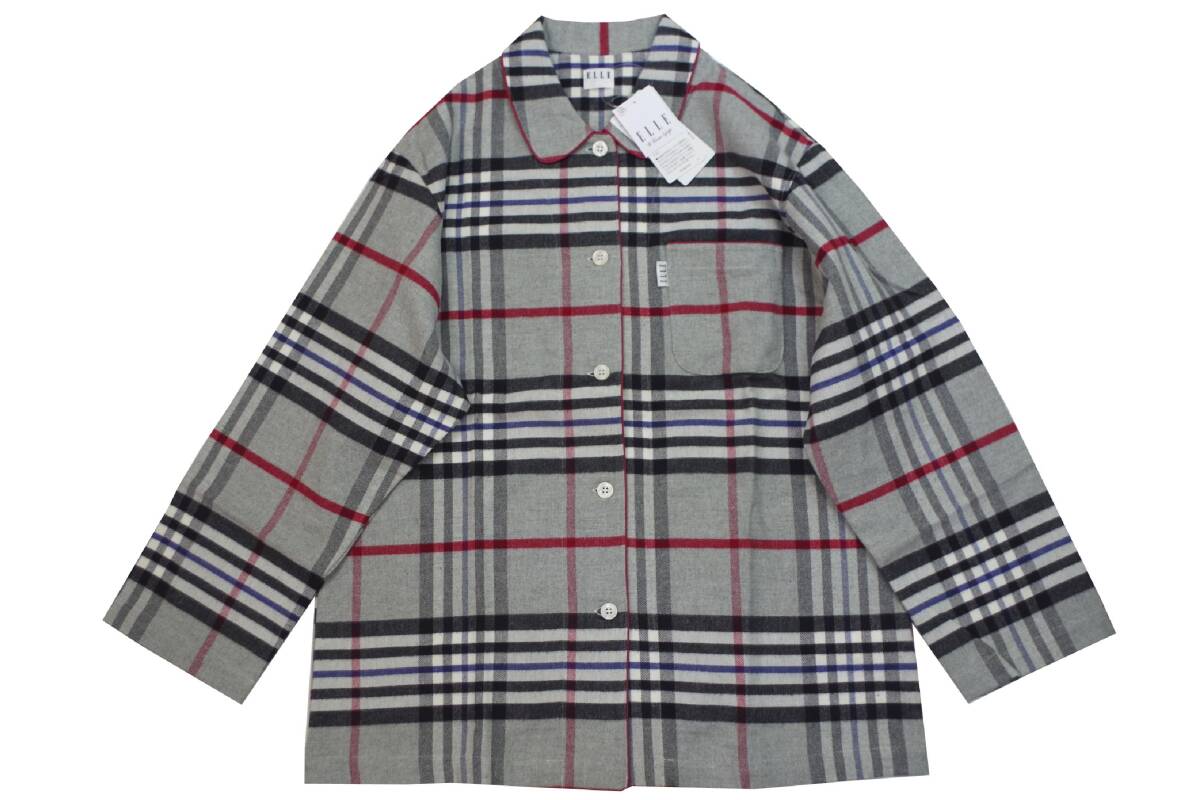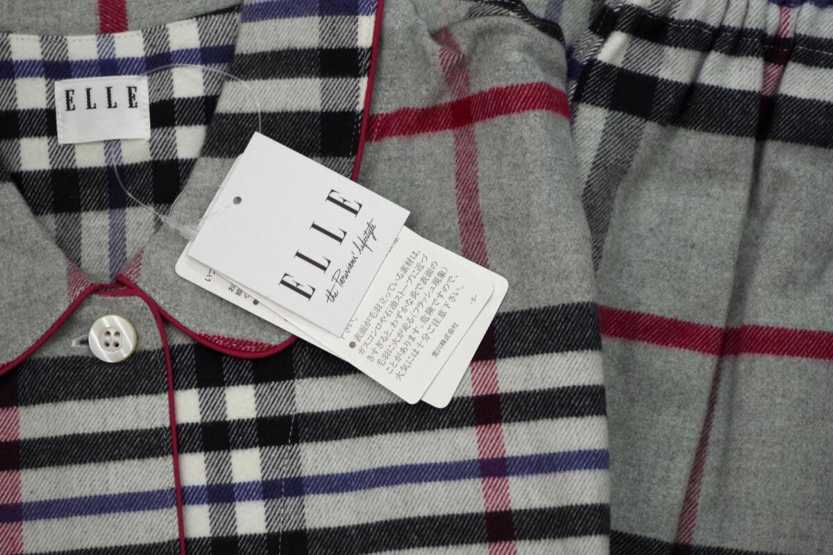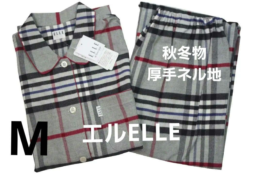 ●エルELLEの秋冬物厚手ネル地パジャマ、新品です。前開き、長袖、ロングパンツ。色はグレー、レッドなど。 サイズMでバスト79-87㎝。素材は綿100%の厚手ネル地。正規ライセンス会社扱い品です。