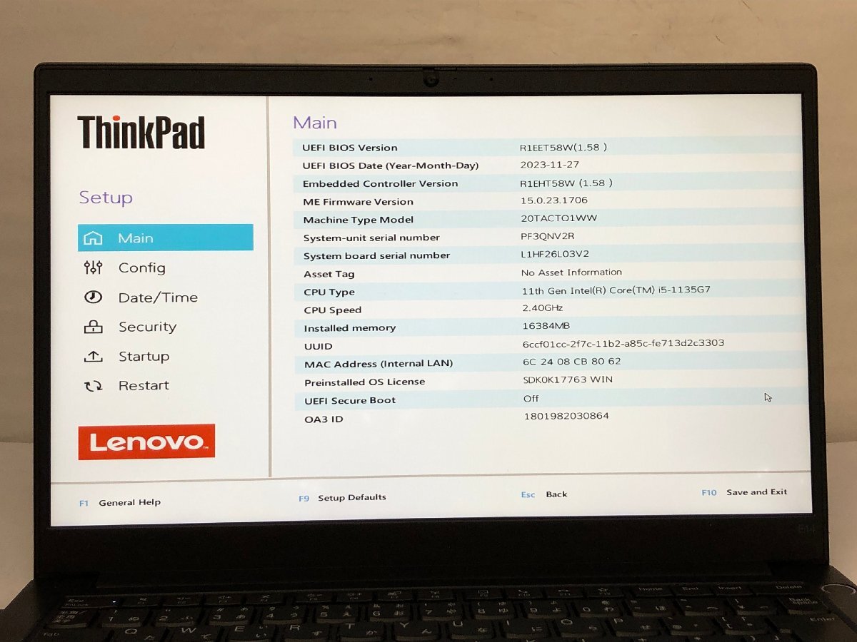ジャンク/ LENOVO 20TACTO1WW ThinkPad E14 Gen 2 Intel Core i5-1135G7 メモリ16.38GB NVME256.06GB 【K23309】
