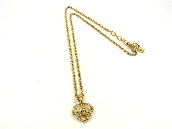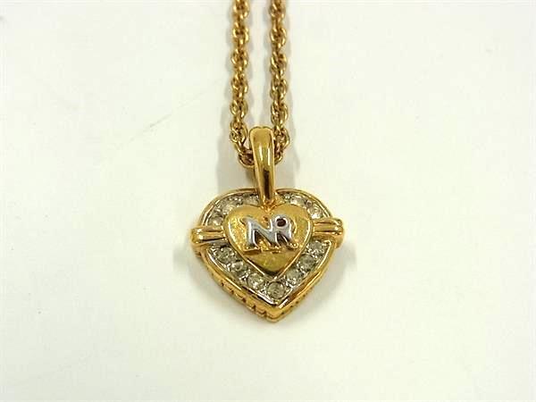 ■美品■ NINA RICCI ニナリッチ ラインストーン ハート ネックレス ペンダント アクセサリー レディース ゴールド系 DI4322