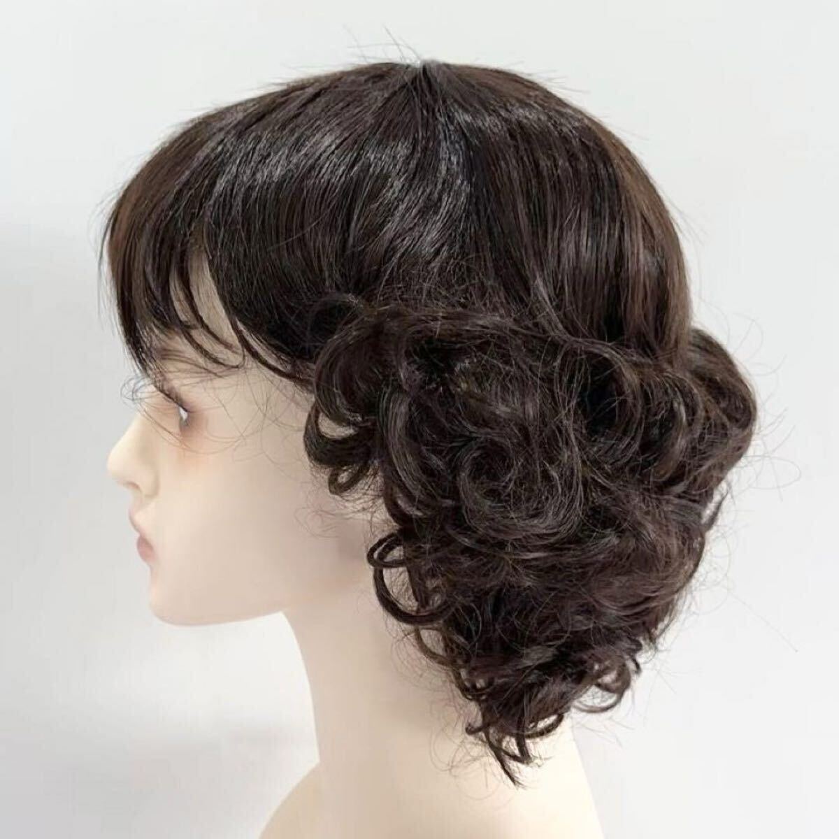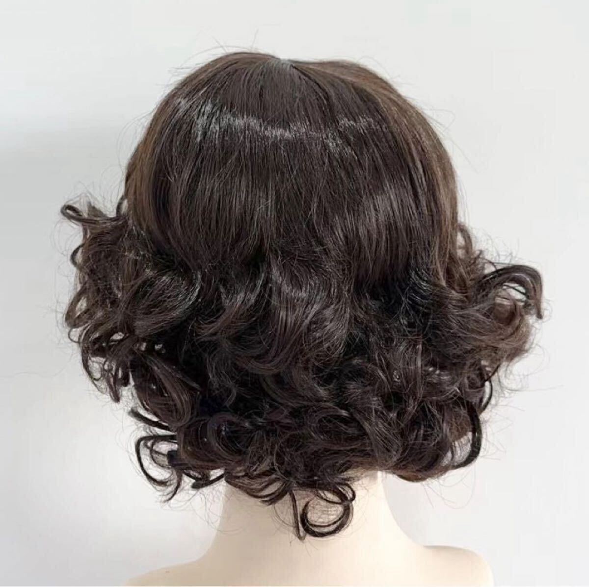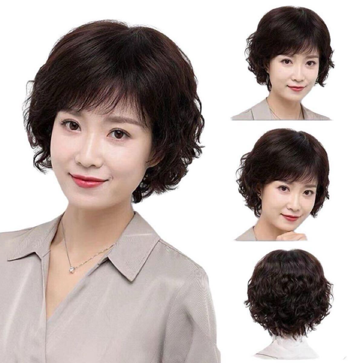 中年 かつら 中高年 wig ヘアー 黒髪 自然 耐熱 通気 医療用 ファッション おしゃれ ネット付ヘアピース カール フルウィッグ ウエーブ パーマ ふんわり 自然 通気 通気性 母50代女性コスプレレディース
