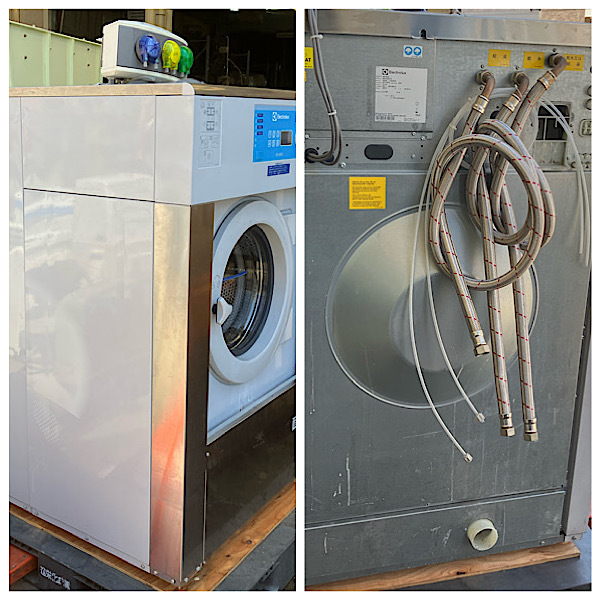 | 規格・仕様 | 型式:W5180H 最大処理量:20kg ドラム容量:180リットル(直径725mm) ドラム回転数:1055rpm 接続口径、給水:3/4”(20A) 接続口径、給湯:3/4”(20A) 接続口径、排水:外径、直径75mm(呼び径65mm) 消費水量:159リットル(普通洗い60℃の場合) 消費電力量:0.5kWh 定格消費電力:2.4kW 推奨ブレーカー容量:16A 電源:三相200V 50/60Hz 本体寸法:幅970x奥行970x高さ1330mm 本体重量:350kg |