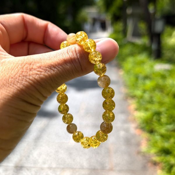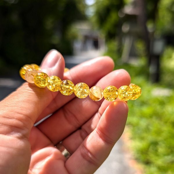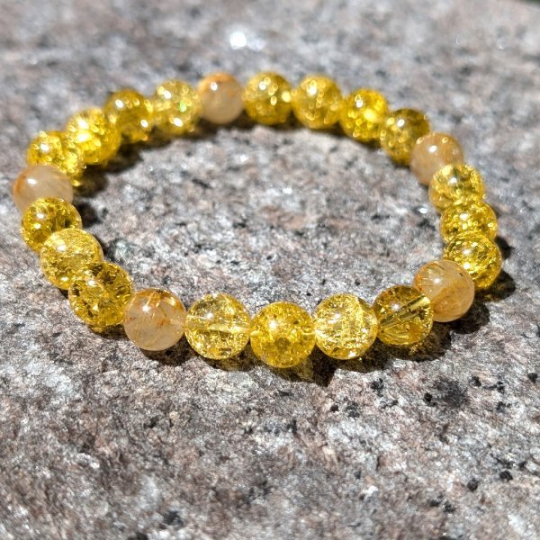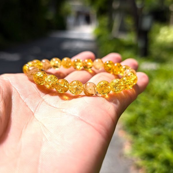 8ミリ ゴールド ルチルクォーツ シトリン クラック 数珠 ブレスレット 金針水晶 八白土星 九星開運 天然石 11月 誕生石 パワーストーン