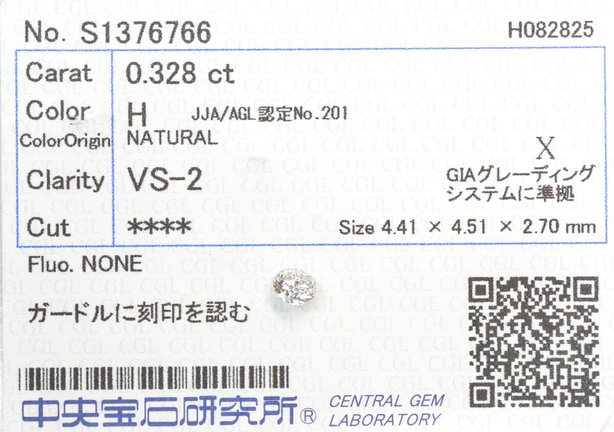 VS2!0.328ct 天然ダイヤ H(ナチュラルカラー)X