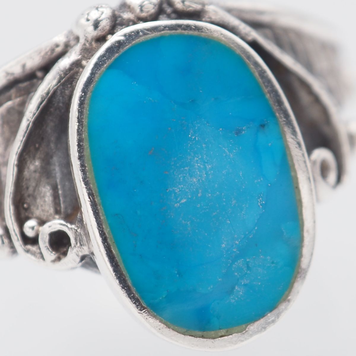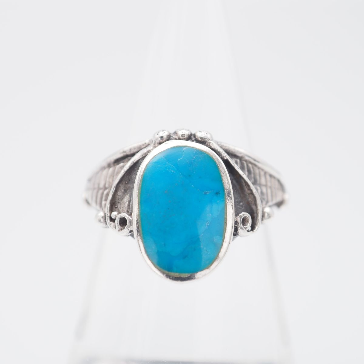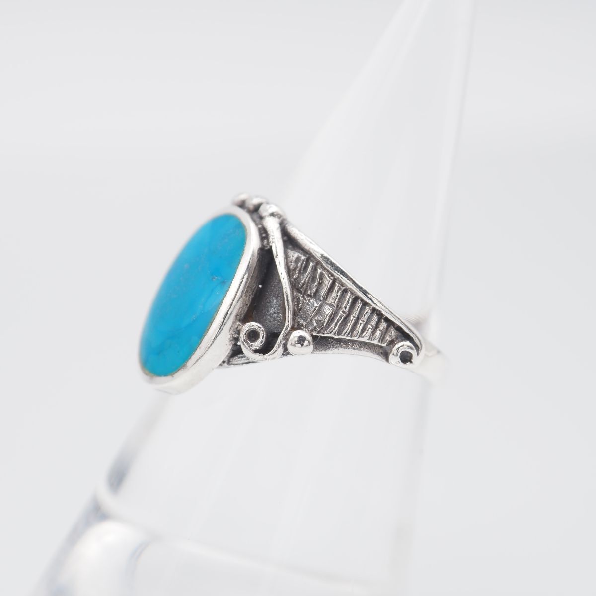 G714 ターコイズ風 925刻印 リング インレイ デザイン シルバー 指輪 ヴィンテージ 11-12号