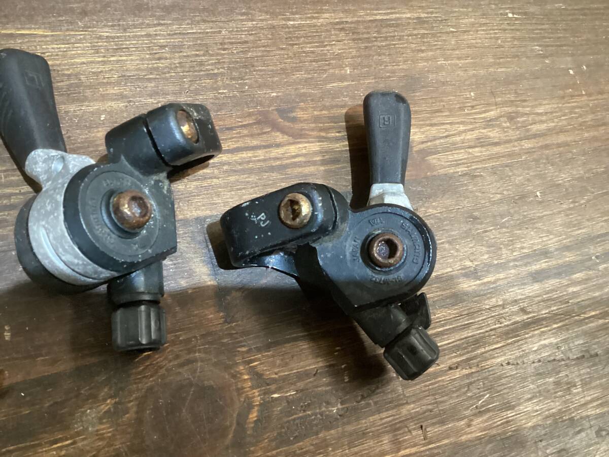 |  シマノDEORE XT SL-M732 サムシフター シフトレバー 3×7S 中古 動作品の出品になります。磨いて錆落とせばもっと綺麗にできると思います。オールドマウンテンにいかがですか?