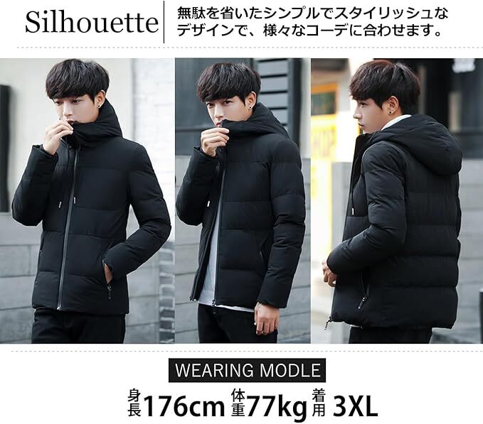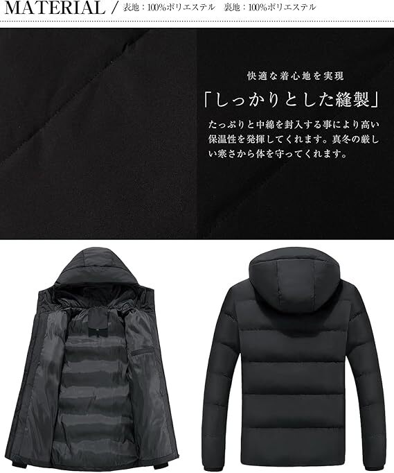 中綿ジャケット メンズ ジャンパー フード付き ショート丈 撥水 軽量 防寒 防風 カジュアル 冬物 冬服(サイズ: XL)