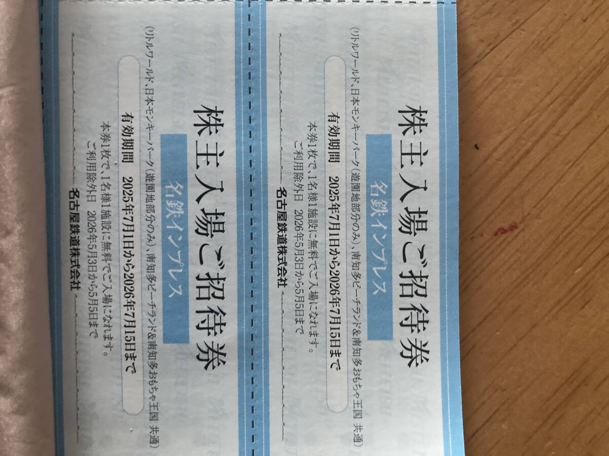 名鉄株主優待 モンキーパーク等 招待券2枚