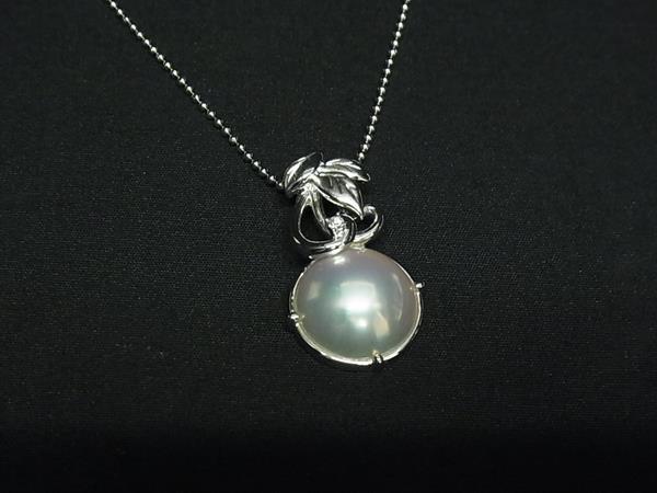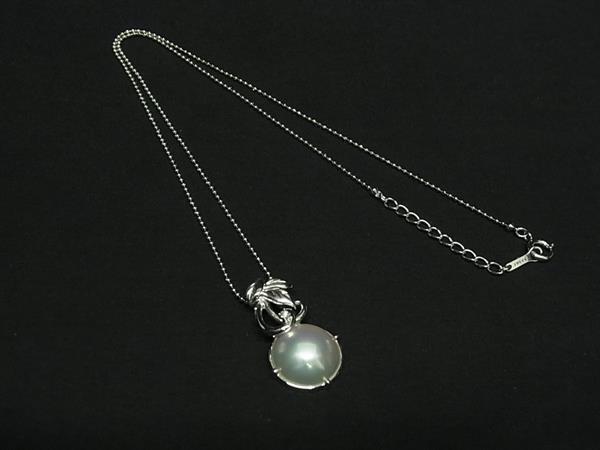 1円 ■新品同様■ TASAKI タサキ 本真珠 マベパール 約15mm SV925 ダイヤモンド 0.01ct ネックレス アクセサリー シルバー系 FV0963