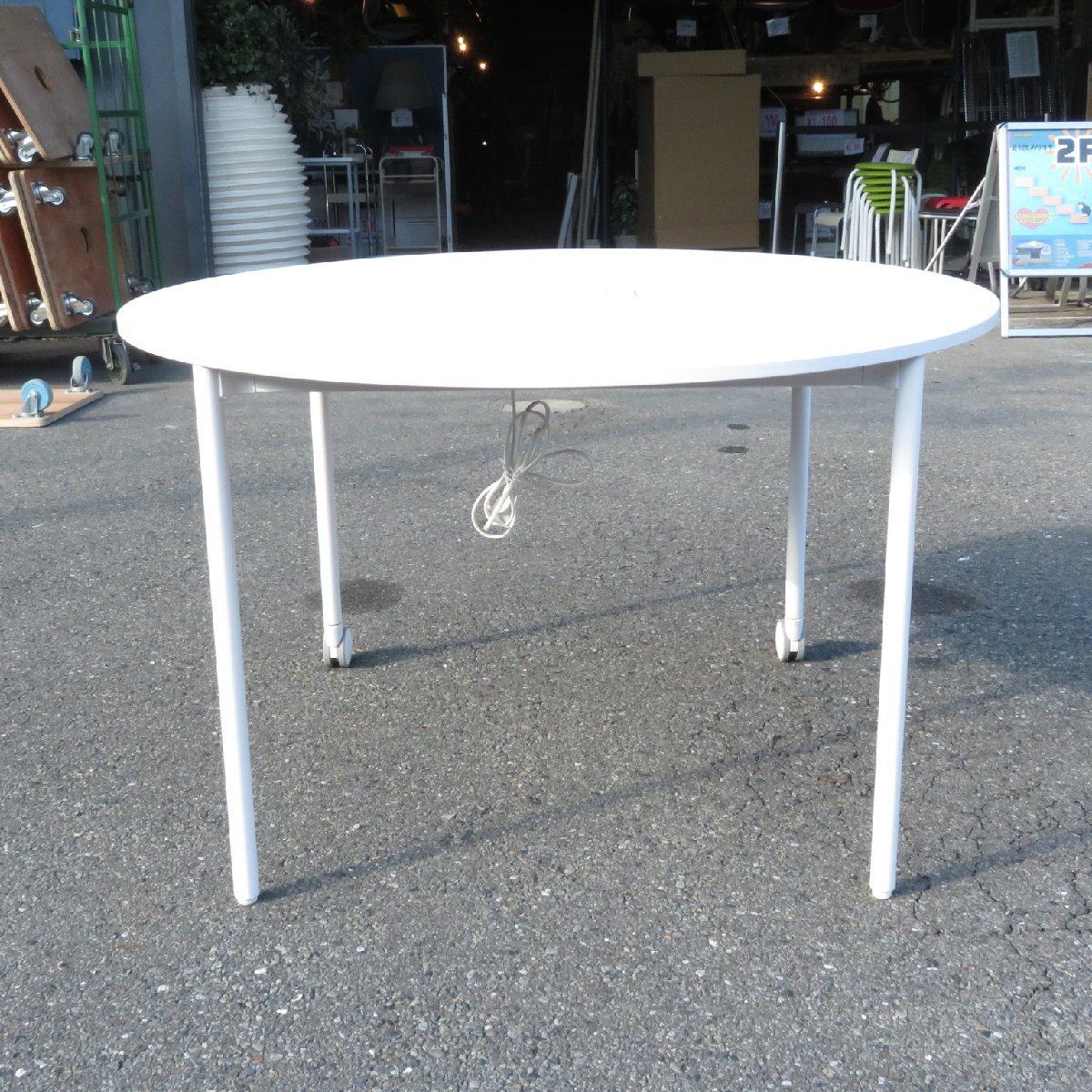 イトーキのオリゴシリーズ 円形ミーティングテーブルが入荷致しました。お色味はホワイトです。 2カ所にキャスターを装備しており、片側を持ち上げることで簡単に移動ができるテーブルです。 コンセントと配線口があるので、数人で同時にお使いいただく際にもコードがごちゃつくことがなく、 スッキリします。明るいホワイトカラーで空間を彩ってくれるので集中して作業に取り組むことが出来ます。 円形なのでミーティングテーブルだけでなく、フリーアドレスデスクとしてはもちろん、 休憩中にちょっとした作業を済ますための用途として配置するのもオススメです! |