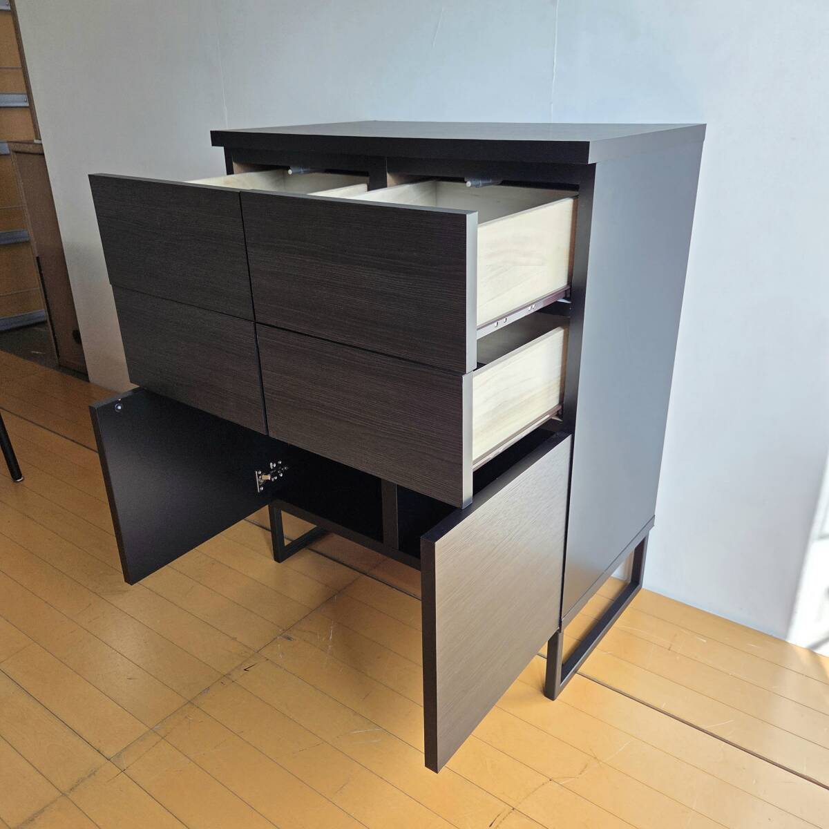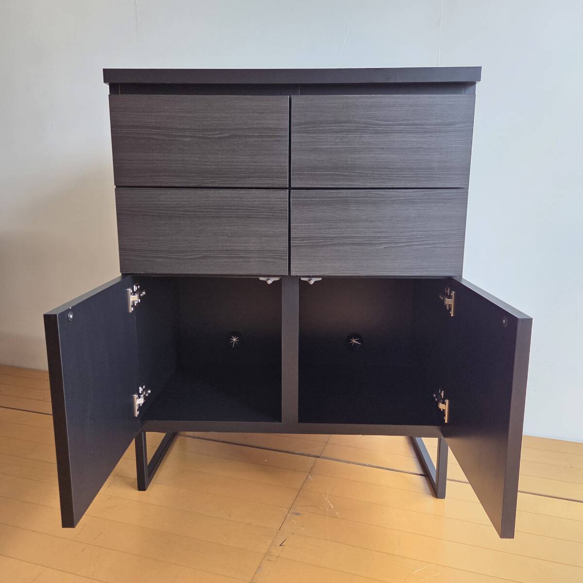 未使用訳あり ブラック スクエアキャビネット 引出しタイプ 幅71cm ディスプレイ リビング ブラック 黒 ラック リビングボード