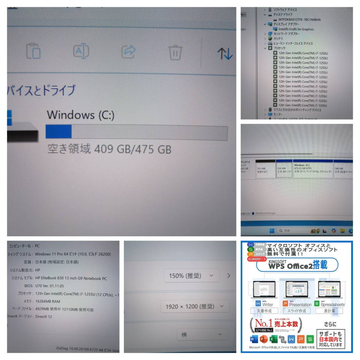 【超速12th i7・カメラ搭載】◆HP EliteBook 830 G9 / 13.3型 ◆ Core i7-1255U[12スレ] / 512GB SSD / 16GB ◆ win11 Pro / Office